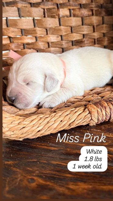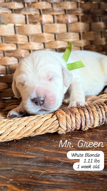 Our puppies go home after 8 weeks old. Each puppy is given a color collar when they are born so that we can track their weight and temperament.