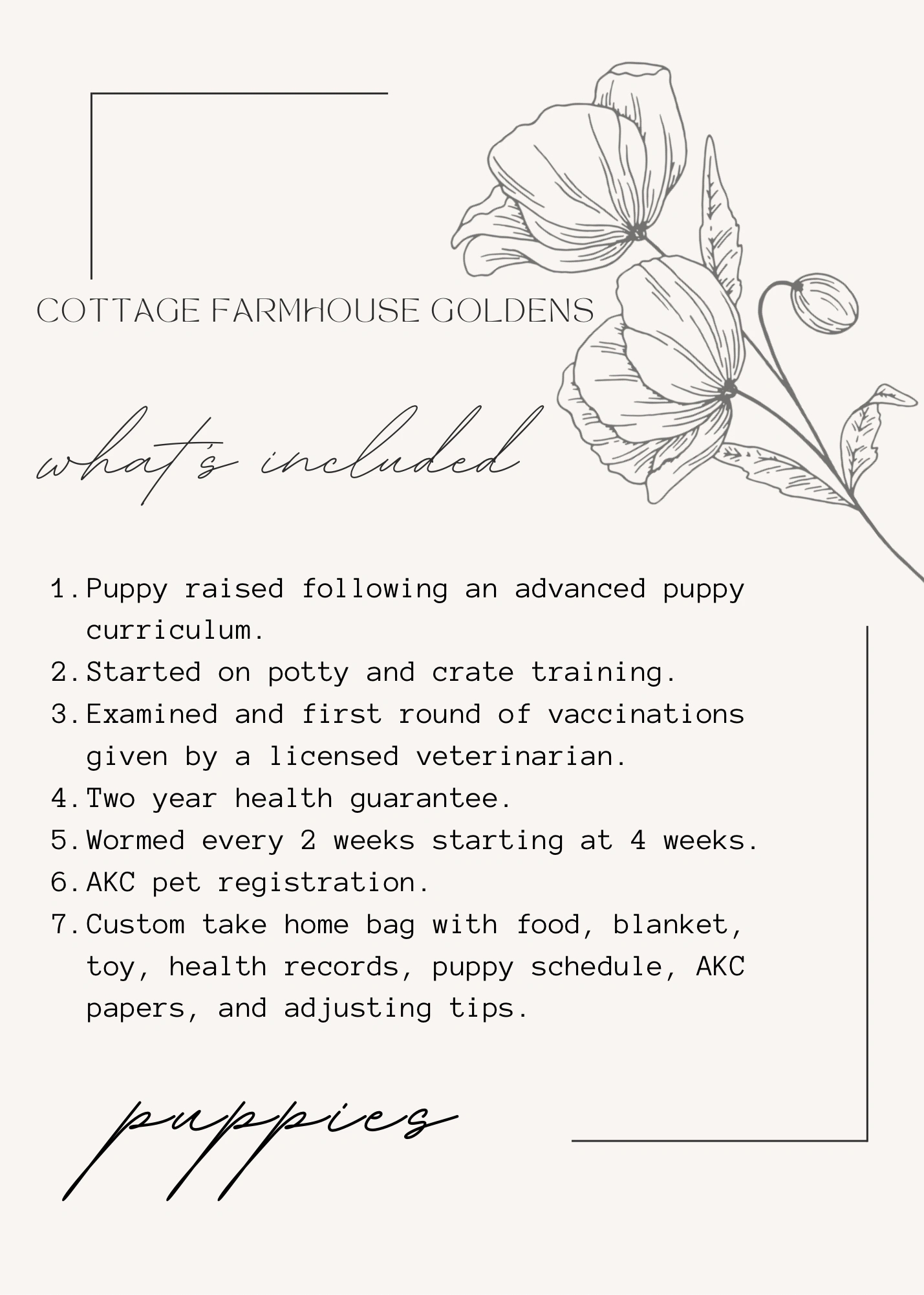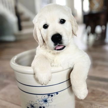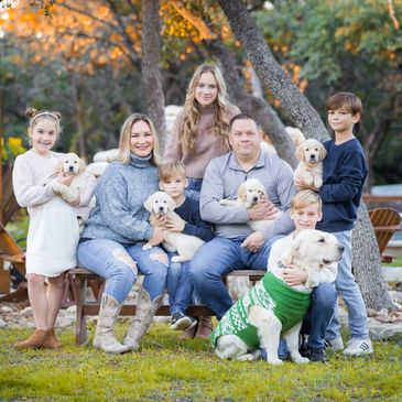 Our Goldens are from a long line of our family Goldens. We have been breeding dogs for 30+ years and have perfected raising exceptional puppies in a loving and caring family home environment. Our parent dogs are gentle and loved, litters are carefully planned out, puppies are raised on an advanced service dog curriculum, and more.