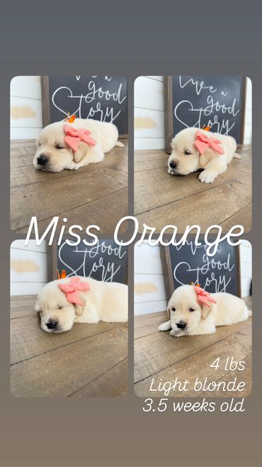 We have miss pink available from 2 girls (orange, and yellow) from Missy’s litter available to go home November 8th weekend