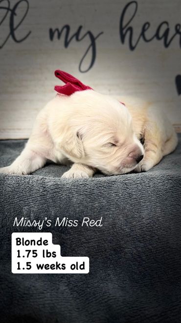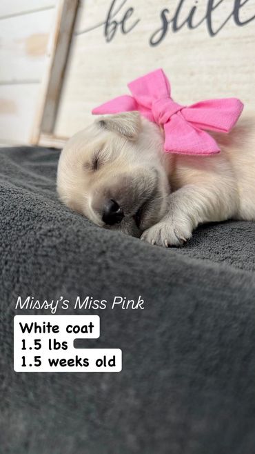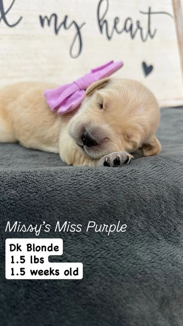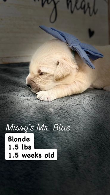 Our puppies go home after 8 weeks old. Each puppy is given a color collar when they are born so that we can track their weight and temperament.