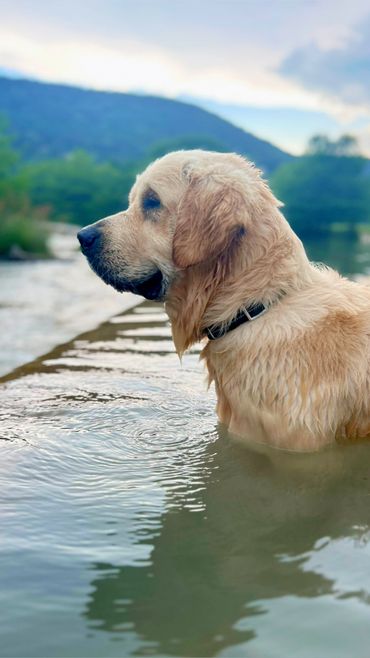 Major of Cottage Farmhouse Goldens is a solid member of our family. He is the happiest Golden you will ever meet. He is sweet and cuddling, but also loves exploring, chasing deer, and fetching a ball. He is happiest when he is camping, swimming rivers, and going somewhere with the family. His personality is very laid back, extremely smart, and tuned in to everything happening around him - nothing gets past his watchful eye.