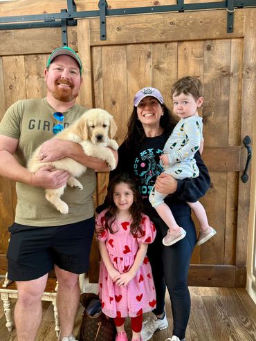 Our Goldens are from a long line of our family Goldens. We have been breeding dogs for 30+ years and have perfected raising exceptional puppies in a loving and caring family home environment. Our parent dogs are gentle and loved, litters are carefully planned out, puppies are raised on an advanced service dog curriculum, and more.