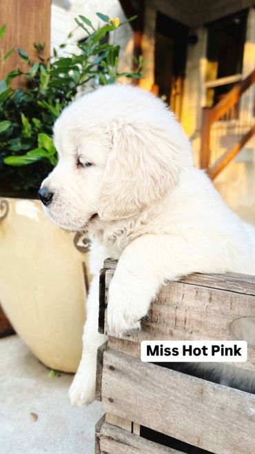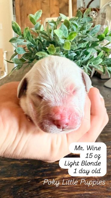 Our puppies go home after 8 weeks old. Each puppy is given a color collar when they are born so that we can track their weight and temperament.